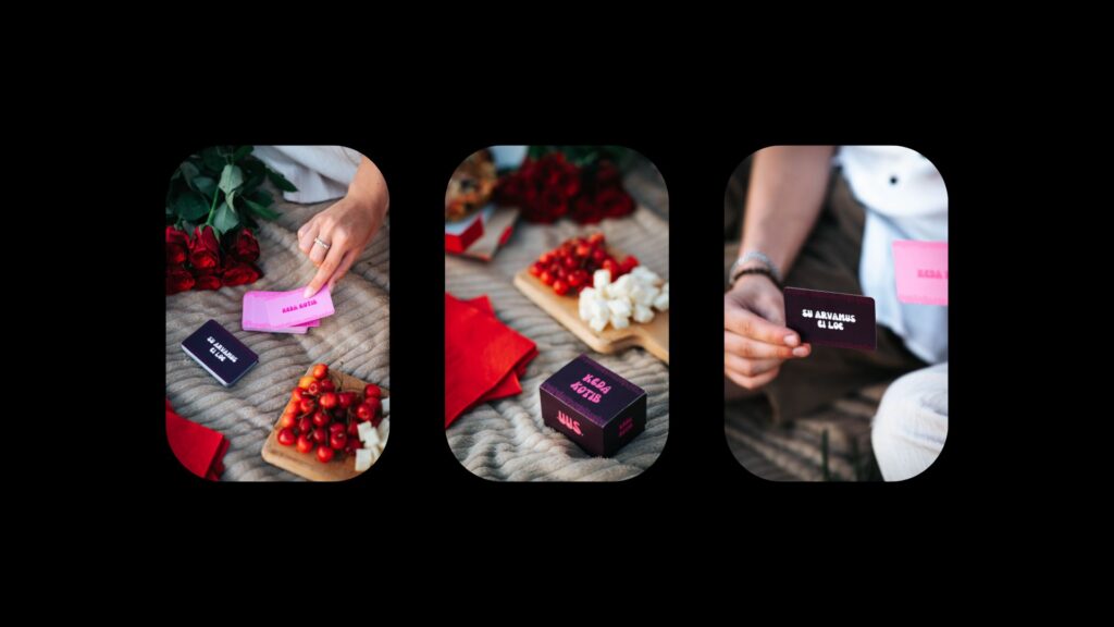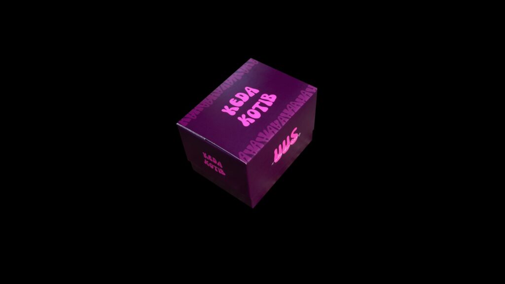 Terve konseptsioon on meie meeskonna loodud –alates esialgsest kontseptsioonist kuni lõpliku teostuseni. Mängumehhaanika kujundamisel pöörasime erilist tähelepanu lõbu ja sisukuse tasakaalule, tagades, et iga küsimus tekitab nii naeru kui ka mõtlemapanevaid vestlusi. Lisaks mängule arendasime välja Keda Kotib täieliku visuaalse identiteedi, sh pakendi, kaartide kujunduse ja graafilised elemendid, muutes mängu oma sihtrühmale visuaalselt atraktiivseks ja kergesti kättesaadavaks. Iga detail on loodud selleks, et mäng oleks noortele kaasahaarav ja meeldejääv.